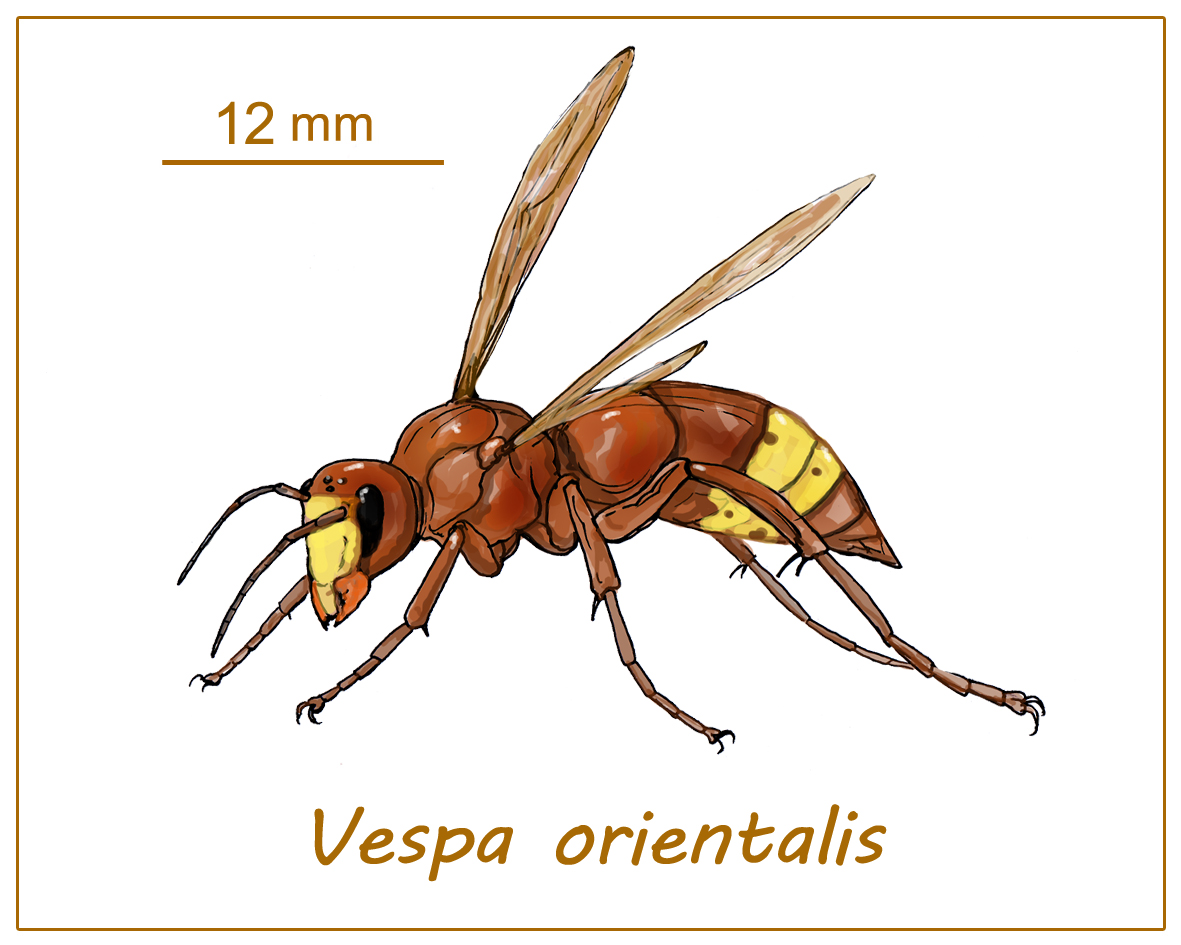 Nom científic: Vespa orientalis Grandària: 25-35 mm Origen: Àsia, nord-est d’Àfrica, Madagascar, Israel i parts d’Europa meridional. Nom (ESP): Avispón oriental Descripció: La vespa oriental encara no ha estat detectada